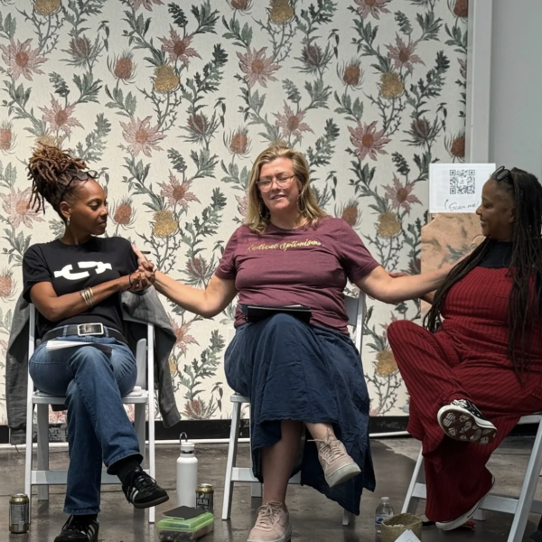 Staci Walker, Lisa Flick Wilson, and Vanessa Jackson (left to right), Strategy and Facilitation Consultations for The Radical Optimist Collective addressing participants during the ATL… Read More